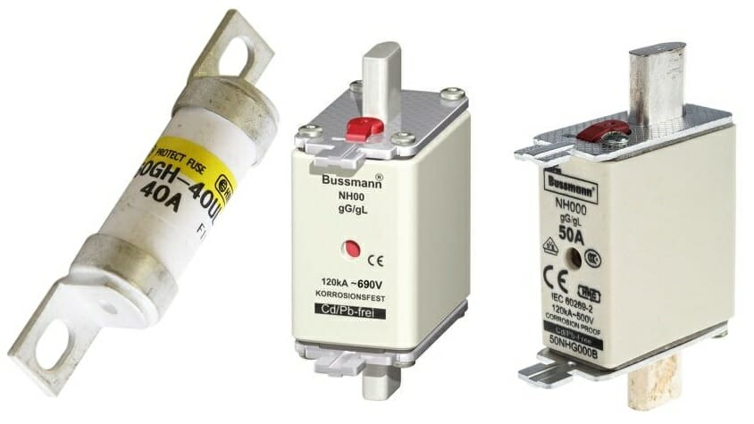 ฟิวส์เป็นอีกอุปกรณ์หนึ่งที่ถูกออกแบบมาเพื่อป้องกันไฟฟ้าลัดวงจรและโหลดเกิน เมื่อเกิดไฟฟ้าลัดวงจรหรือโหลดเกินจะทำให้ฟิวส์ขาดและทำการตัดการเชื่อมต่อของวงจร ซึ่งในการป้องกัน ฟิวส์จะทำงานไวกว่าเซอร์กิตเบรกเกอร์แต่จะใช้ได้ครั้งเดียวและต้องเปลี่ยนตัวใหม่ถ้ามีความผิดปกติของระบบไฟฟ้าเกิดขึ้น
